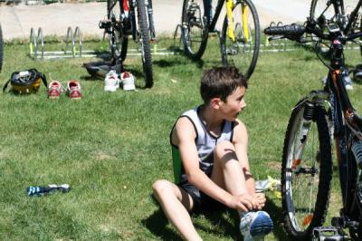 01 de julio de 2008 - 18:33 - Triatlon de PERALTA Urko atandose las zapatillas... Facebook Twitter Whatsapp Email